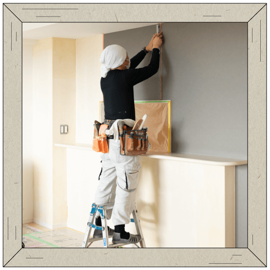 壁や天井に用いられている材質によって材料を選定し、下地処理を行い本塗装していきます。